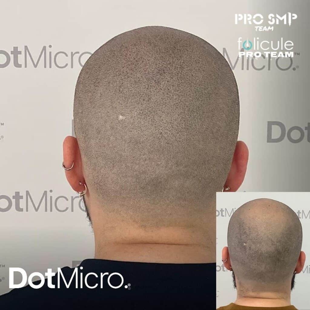 Rear view of shaved scalp micropigmentation showing even pigment coverage